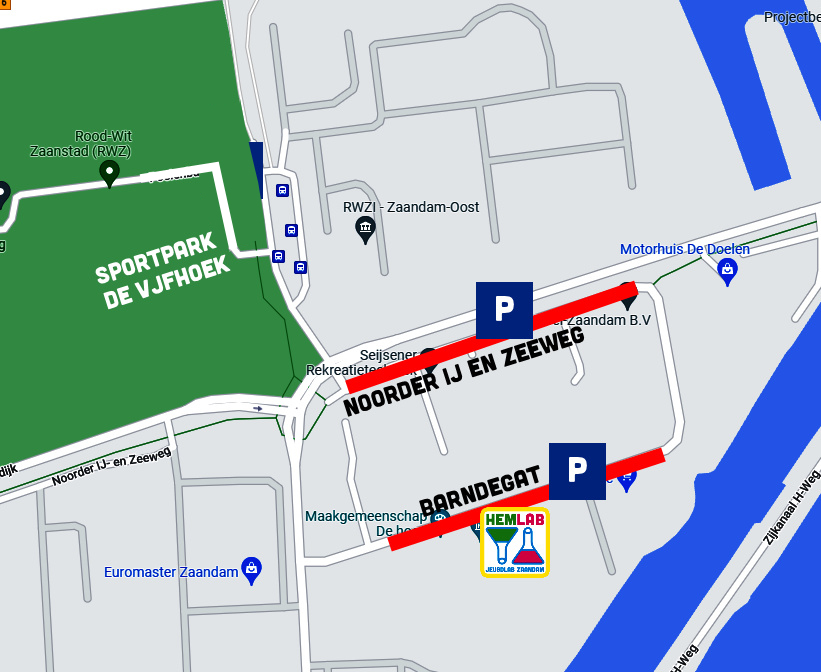 Het Hemlab is voor meeste bezoekers met de auto verrassend snel te bereiken via de A8 afslag Zaandam-Zuid/Oostzaan.