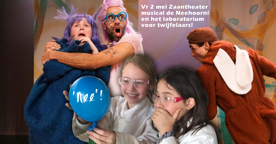 Wil je niet of wel naar de familiemusical de Neehoorn in het Zaantheater? Ja, nee? Kom dan eerst naar het Laboratorium voor Twijfelaars van het Hemlab. Meng Neehoorntraan met geen-water en ze veranderen van kleur. Voeg wit-wat-poeder toe en gebeurt er iets? Niet of Wel, Schud en Zwel. Alles wordt nu vanzelf groter en mooier! Neem ook zelf de touwtjes in handen om Nergens te komen.