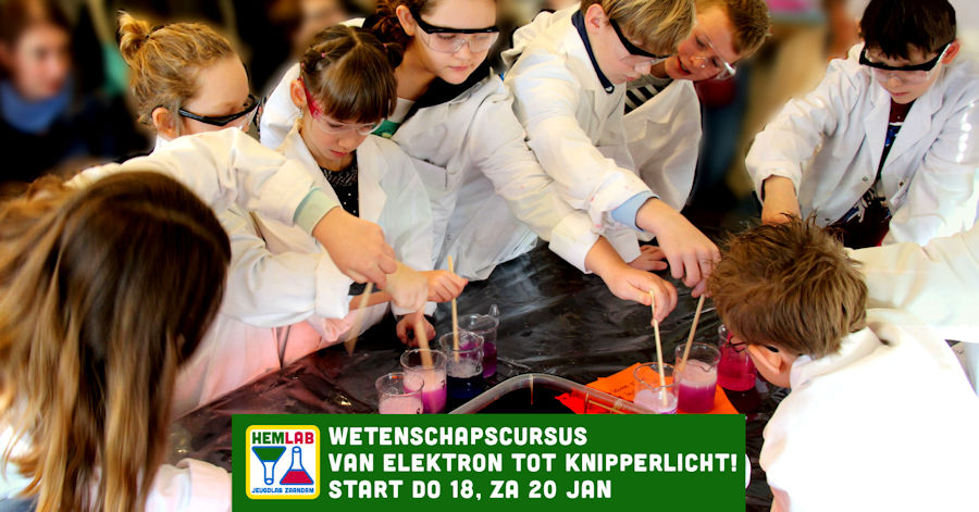 Donderdag 18 januari en zaterdag 20 januari startte de wetenschapscursus Van elektron tot knipperlicht! Het is nog mogelijk om in te stappen in de 2e les. Nog 9 weken lang ontdekken kinderen wat elektronen zijn, wat barnsteen, licht, magnetisme en een aansteker daarmee te maken hebben. Onderzoeken en maken ze batterijen. Sluiten ze een stroomkring en solderen ze van elektronische onderdelen een knipperlicht. Voor jonge onderzoekers tussen 8 en 12 jaar.